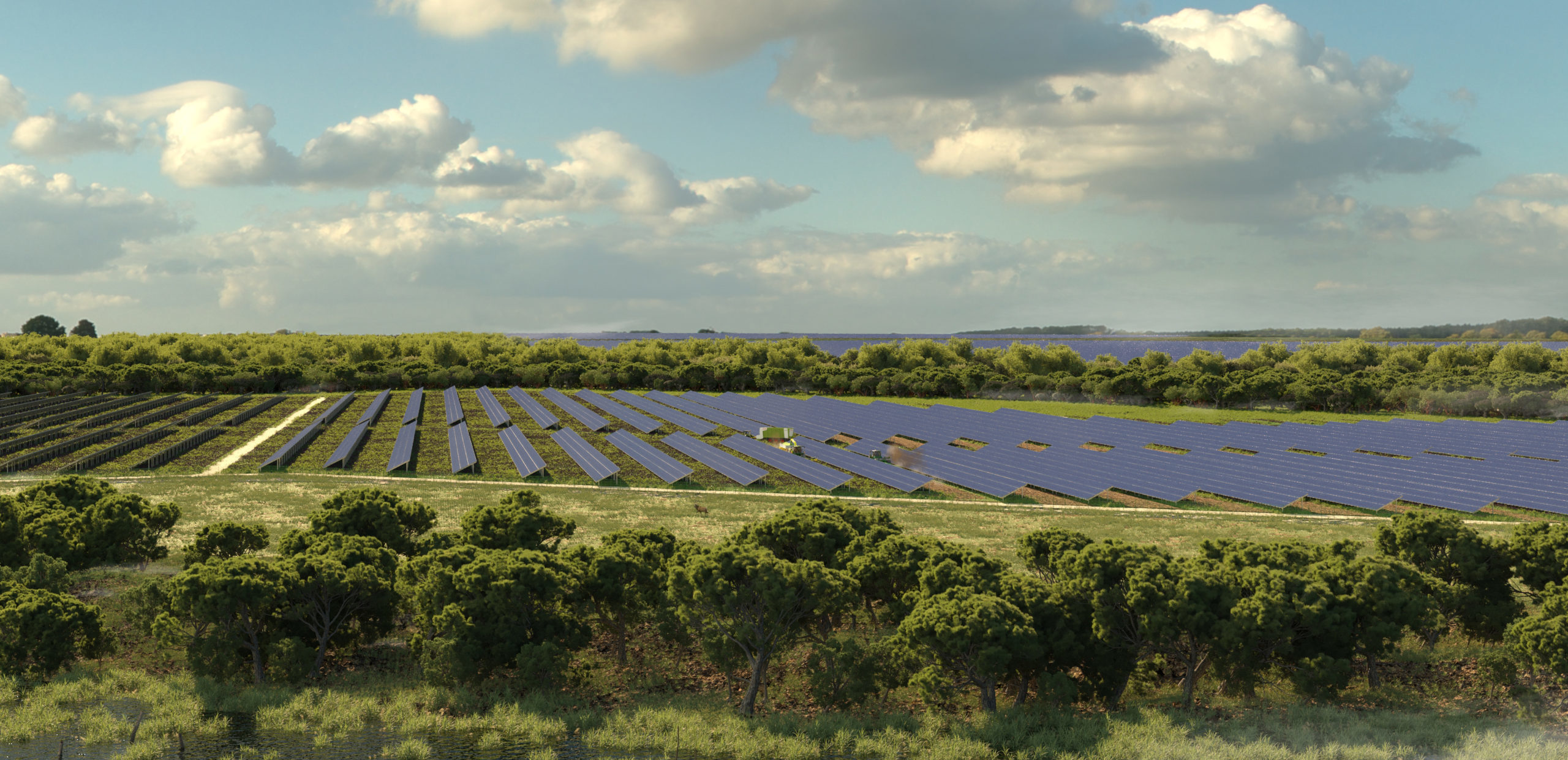 L’agrivoltaïsme ne consomme pas d’espace, bien au contraire : positionnés en hauteur, les panneaux photovoltaïques permettent d’éviter de consommer des terres agricoles et de porter préjudice aux productions alimentaires (végétale et/ou animale).